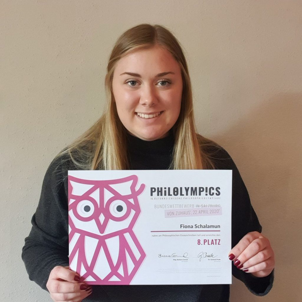 Fiona Schalamun (8b) erreichte beim Bundesbewerb der Philosophie-Olympiade österreichweit den 8.Platz!