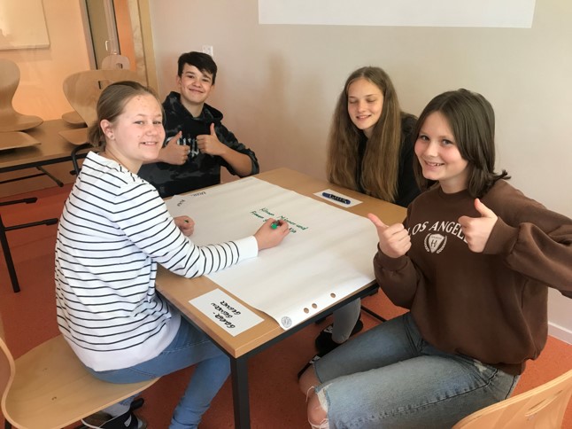 Die Französischklassen 4a und 5a kamen in den Genuss, einen Blick auf die Gleichstellung Mann und Frau in der Gesellschaft zu werfen. Dabei erlebten sie spürbar die Ungleichheiten, waren erstaunt über reale Einkommensunterschiede von mehr als 30% bei gleicher Tätigkeit, überlegten, welcher der beiden Elternteile für die Kinderbetreuung zuständig sein kann, übernahmen Rollen und lernten dadurch neue Perspektiven kennen. Perfekt vorbereitet durch Frau Margit Schwarz und Frau Petra Kaspar – Buchegger waren die 4 Stunden sehr abwechslungsreich.