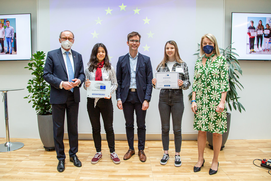 Die EU-Juniorbotschafterinnen Katrin Prettenthaler und Lisa Buchberger nahmen zusammen mit Seniorbotschafter Günther Kollau die Zertifikate im Rahmen der feierlichen Zeremonie entgegen, die aufgrund von Corona erst so spät stattfinden konnte. Alle drei sehen es als Auftrag, das Thema Europa am BG/BRG/BORG Köflach auch in Zukunft sichtbar zu machen.