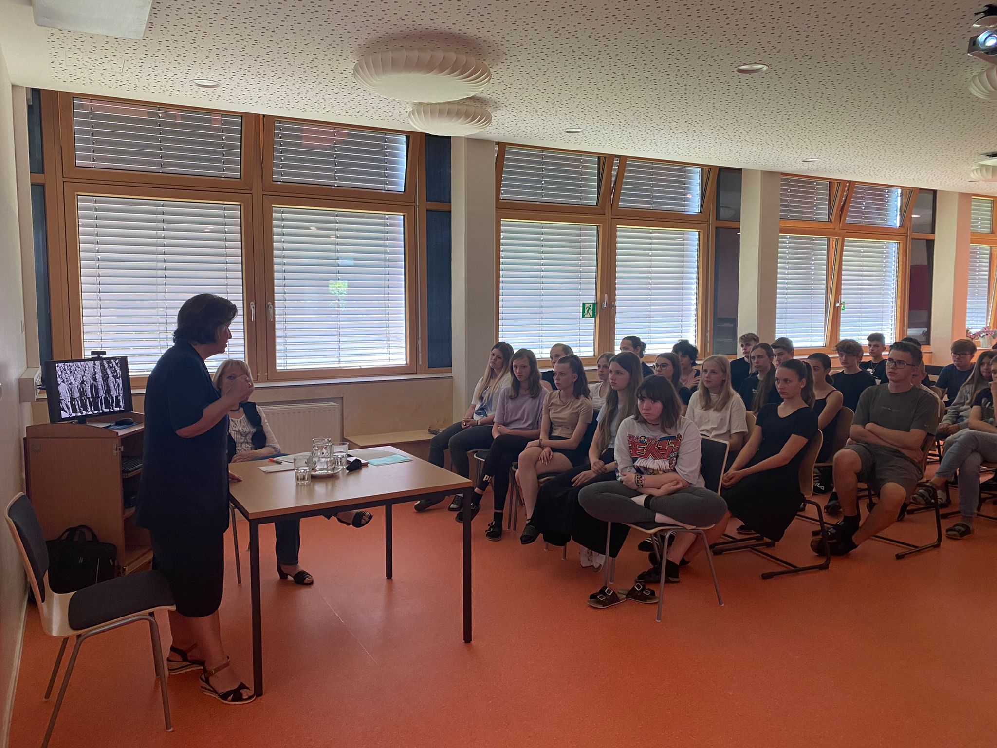 Frau Irene Hubmann, die als Referentin und Zeitzeugenbegleiterin tätig ist, gestaltete eine Präsentation zum Thema Nationalsozialismus und Zweiter Weltkrieg.
