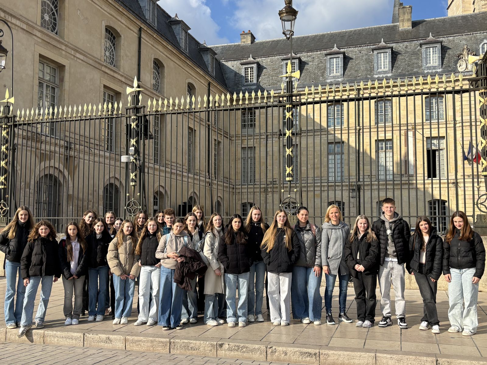 Von 15. bis 22. März 2025 verbrachten die 4A und 5A eine Woche fantastique et inoubliable in Dijon, la capitale der Region Burgund, und besuchten dort die Partnerschule, das Collège Le Parc. Auf dem Programm standen neben dem klassischen Schulbesuch Abende bei französischen Gastfamilien und auch das Kennenlernen des mittelalterlichen Stadtzentrums, des bekannten Parcours de la Chouette und lokaler Spezialitäten wie moutarde und pain d’épices. Nicht fehlen durften ein Bowling-Nachmittag mit den französischen Schüler*innen, ein Besuch der von Gustave Eiffel designten Markthallen und ein Ausflug durch die Weingegend nach Beaune, wo das architektonische Meisterwerk Les Hospices de Beaune mit Audioguides erkundet wurde.