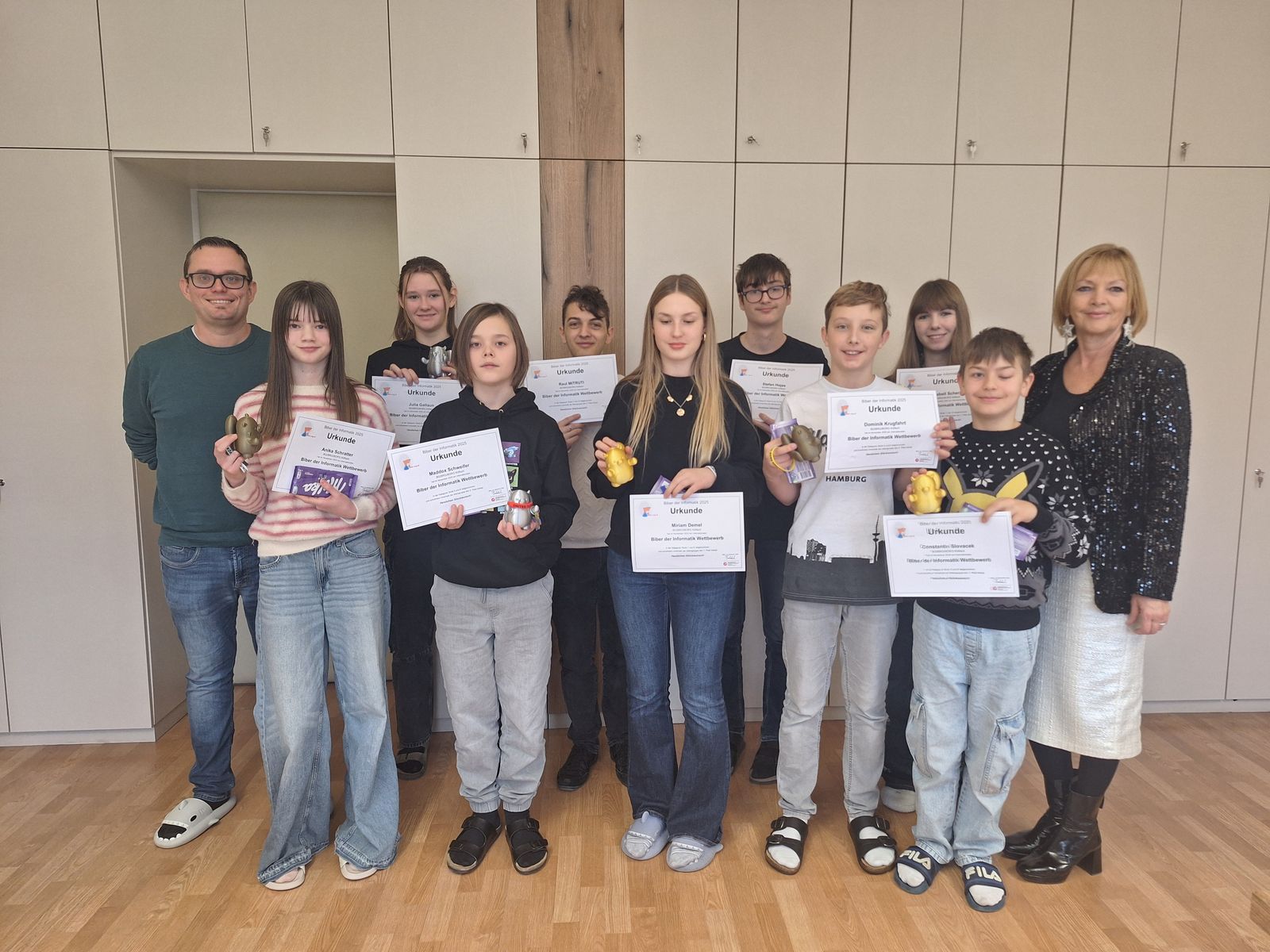 Nachfolgend die Top 3 jeder Alterskategorie aus der Schule, sie alle wurden mit einem Biber aus Gold, Silber bzw. Bronze sowie einer Urkunde ausgezeichnet: